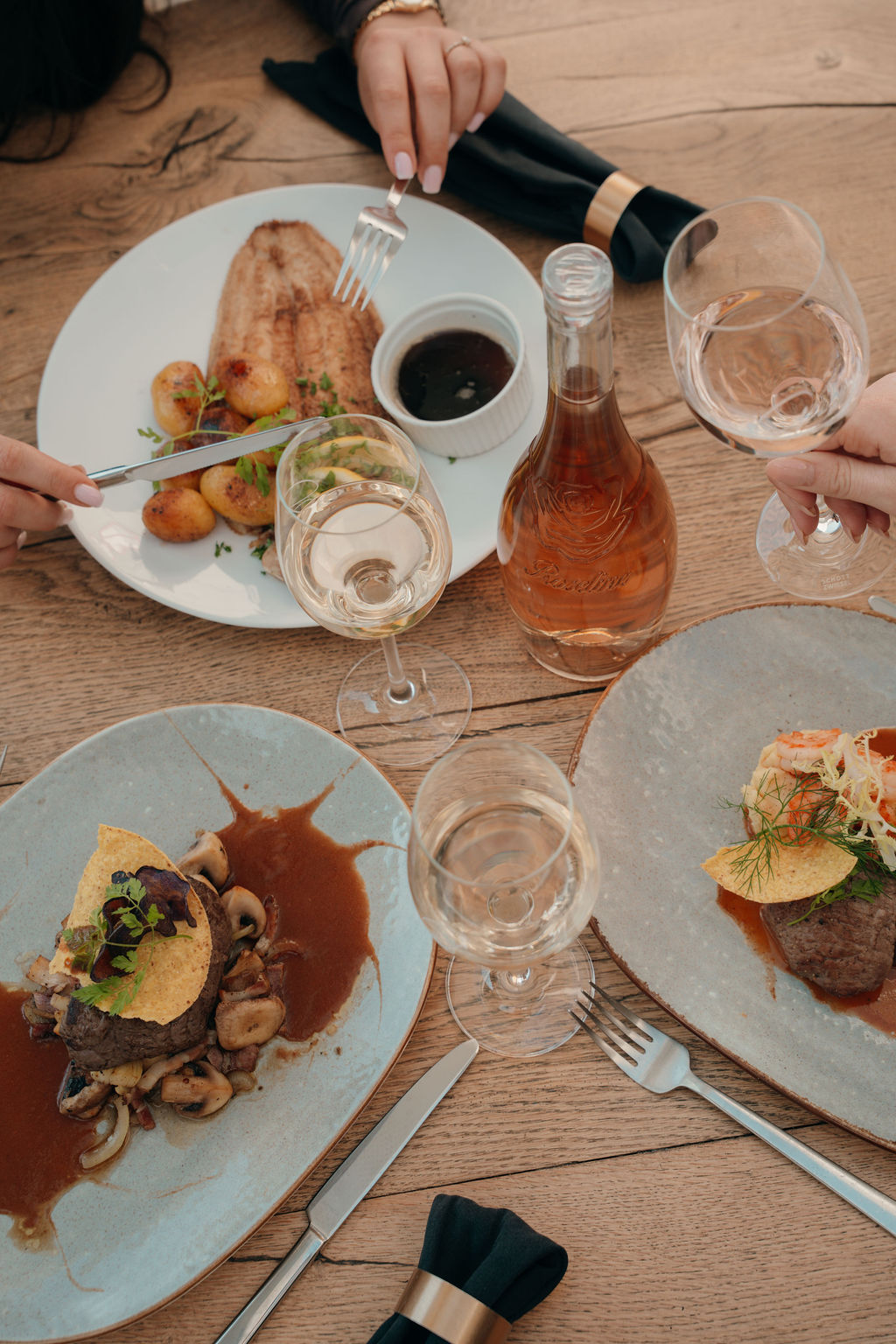- Twee zorgvuldig geselecteerde wijnen: Geniet van een witte, rode of rosé wijn